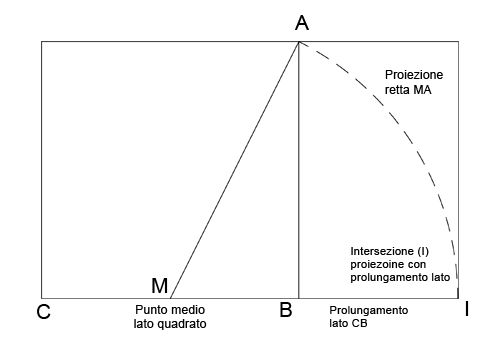 Un rettangolo aureo si può costruire anche partendo dal quadrato tramite un semplice compasso facendo perno nel punto medio di un lato tracciando la curva che parte da uno dei vertici opposti a questo; infine si proietta la retta andando a congiungere il prolungamento del lato sul quale abbiamo preso il punto medio. Il punto di intersezione ci da la misura del rettangolo aureo:
